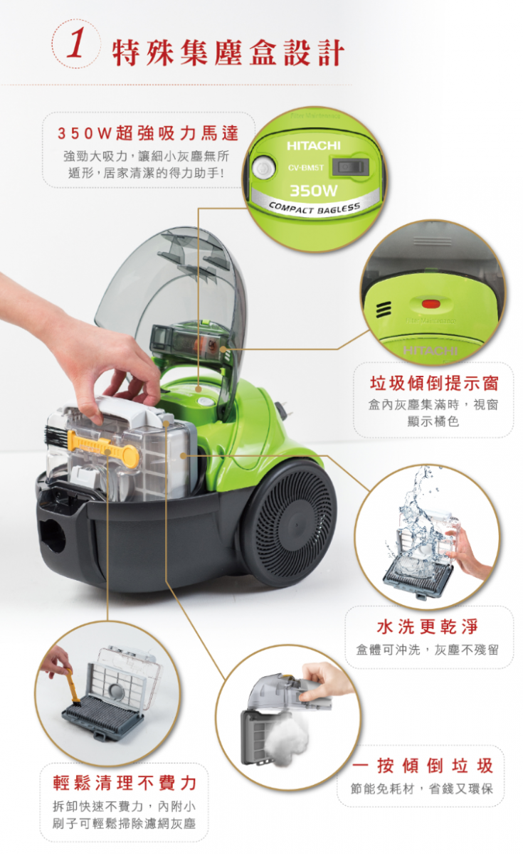 鴻輝電器 | HITACHI日立家電 CVBM5T 萊姆綠 350W免紙袋吸塵器