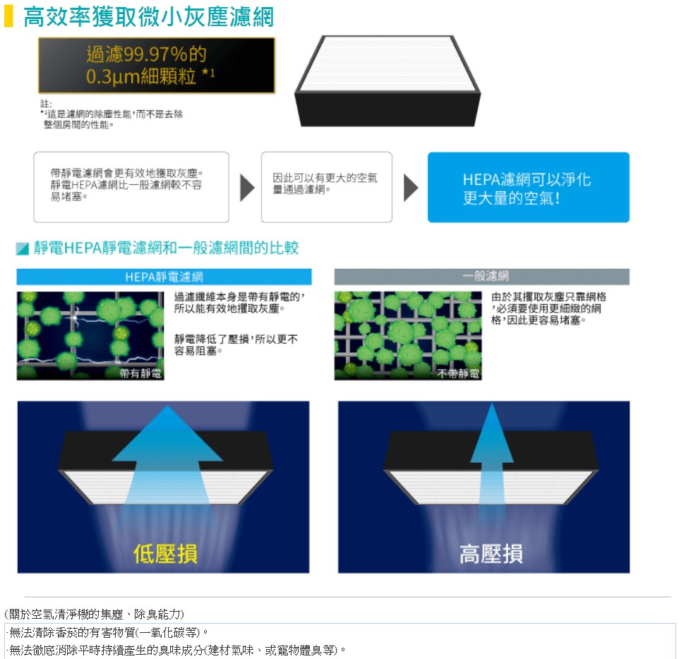 ∎ 使用靜電HEPA濾網網眼不易阻塞