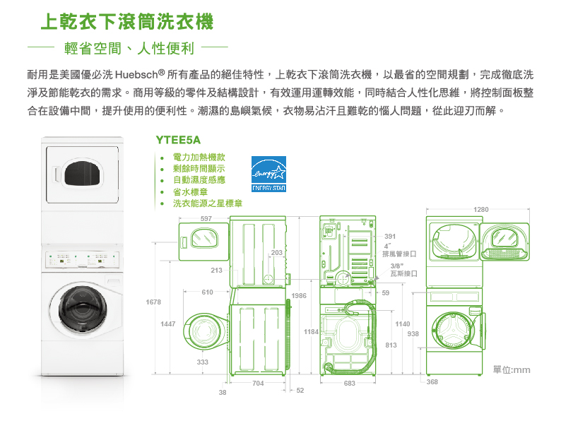 電力需求:洗衣 120V/60Hz / 乾衣 220V/60Hz / 30A